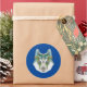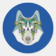 Ilustracion como gráfico de la cara de un lobo / husky con adornos verdes y azules | Color del fondo del personalizable