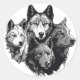 Pegatina Redonda Wolf Pack Tribal Lobos blancos y negros