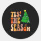 Pegatina Redonda Womens Groovy Tis The Season Christmas Hippie Pine