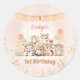 Pegatina Redonda Woodland Animals Boho Pastel Chica Primer cumpleañ