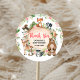 Pegatina Redonda Woodland Animals Floral Wood Slice Baby Shower
