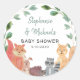 Pegatina Redonda Woodland Animals Parejas Baby Shower