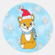 Pegatina Redonda Woodland criaturas Navidades Fox con sombrero Sant