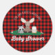 Pegatina Redonda Woodland Lumberjack Baby Shower Animales Red Plaid