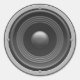 Representación realista de un altavoz estéreo (o dos). Gráfica en blanco y negro, en camisetas, caramelos, cartas, regalos.