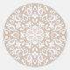Esta mandala blanca se sienta sobre un fondo marrón claro o bronceado. El color es suave y natural. En algunas luces puede parecer un gris cálido. Parte de la colección Pras Mandala.