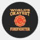 Pegatina Redonda Worlds Okayest Firefighter Fireman Funny Firefight