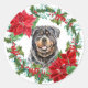 Pegatina Redonda Wreath Navidades de Rottweiler Poinsettia Holly Be