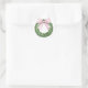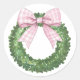 Pegatina Redonda Wreath perrito con rosado Gingham Bow