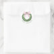 Pegatina Redonda Wreath perrito con rosado Gingham Bow