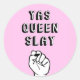 Esta obra de arte muestra a un poster de estilo personalizado con la cita "Yas Queen Slay" y el puño femenino enarbolado.