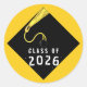 Grad gift stickers, envelope seals and party favor labels featuring classic black graduation cap with gold tassel on yellow background. Perfect for senior grads celebrating with the Class of '26. To customize edit text to change year.