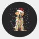 Pegatina Redonda Yellow Labrador Retriever Christmas Tree Light Paj