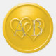 Pegatina Redonda Yellow Two Hearts Intertwined Monogram Wedding