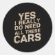 Pegatina Redonda Yes I Really Do Need All These Funny Car Lovers Fo