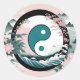 Pegatina Redonda Yin Yang, floral, Verde azulado sabio rosa