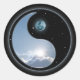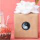 Un símbolo Yin-Yang con la luna en un cielo estrellado y sol sobre las nubes, en camisetas, caramelos, tarjetas, regalos.