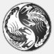 Este diseño de yin yang blanco y negro presenta dos escorpiones estilizados. Cada arácnido gira alrededor del borde de la gota de la lágrima con su jengibre curvándose hacia el cuerpo. Las pinzas de los escorpiones se sostienen justo encima de la cabeza y sus piernas se estiran en una posición agresiva. Este elegante patrón es un impresionante ejemplo de este símbolo tradicional para el equilibrio de la naturaleza.