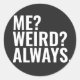Pegatina Redonda ¿Yo? ¿Raro? Siempre. Diversos dichos de introverti