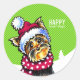 Pegatina Redonda Yorkie Scarf Navidades Happy Howl-i-days