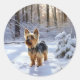 Pegatina Redonda Yorkshire Terrier Let It Snow Navidades