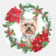 Pegatina Redonda Yorkshire Terrier Poinsettia Holly Holiday Wreath