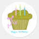 Una tarta de cumpleaños dulce con helado de chocolate y espolvorines. ¡También velas de tres cumpleaños! El dicho "feliz cumpleaños" puede cambiarse o eliminarse como se desee.