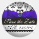 Pegatina Redonda Zafiro MONOGRAM AZUL Y BLANCO DAMASK