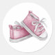 Pegatina Redonda Zapatos de bebé con acuarela rosa Fiesta de bebé
