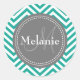 Pegatina Redonda Zigzag azul y gris Verde azulado monogramado