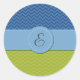 Pegatina Redonda Zigzag verde, zigzag azul, chevron, monograma