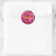 Pegatina Redonda Zinnia rosa y abeja de burbujas