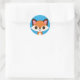 Un lindo naranja y zorro blanco sobre un fondo azul.
