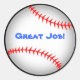 Pegatina de béisbol redondo con las palabras "¡Gran trabajo!" en azul...Excelente para los profesores de vuelta a la escuela.