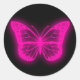 pegatina redondo clásico de mariposa rosa neón