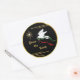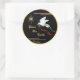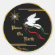 ¡Brilla tu paquete o sobre con esta pegatina de navidad de la paloma blanca "One of a Kind"! Cuenta con una serena paloma blanca que vuela entre las estrellas llevando una rama de olivo con cintas rojas y verdes que fluyen sobre un borde dorado......Difundiendo La Paz En La Tierra! Este es un diseño de arte original del artista Kerry Miller.