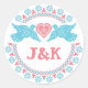 Ama a los pájaros pegatina o sello para sobres con un toque mexicano o suroeste. Este diseño es parte de mi juego de diseño de invitación "Lovebirds" (pájaros amorosos) de papel. Escriba sus propias iniciales (o mensaje) en el centro y elija su propia fuente y color de fuente. Contáctame si quieres esta etiqueta de un color diferente. El color de coral es f3808f, el agua es 69cce1