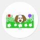 Pueden admirar mi adorable dibujo de un cachorro esponjoso jugando con césped verde lleno de flores, yo llamo a este dibujo, "Pup N Play". Estos pegatinas redondos son el regalo perfecto para cualquier ocasión.