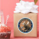 Genial para el fiesta de un niño, con galletas por supuesto. De la mundialmente famosa y mítica granja lechera Matanuska Moose Milk en Willow Alaska; no muy lejos de Anchorage. Un alce de toro (Alces alces) sostiene un vaso de leche de alce fresca. El alce está rodeado por un cartel circular con el azul y el amarillo de la bandera estatal de Alaska. En la pancarta se lee el texto "MATANUSKA MOOSE MILK", "WILLOW, AK" y "ESTD 1957".