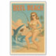 Pegatina Reel Beach Shark Fishing Pin-Up Retro Coastal Life