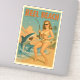 This reel beach is real salty! The sassy vintage inspired pin-up confidently handles the fishing pole while her big catch, a feisty shark, jumps out of the water. The scene is completed with palm trees, vintage car and lifeguard stand in the background. This cheeky twist on classic retro poster art will make you laugh. This fun coastal life sticker will look great on your cooler, car, water bottle, laptop and more! Different sizes available.
