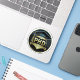 Este pegatina cuenta con un gorra de graduación en negro y oro, y también puedes añadir el nombre del graduado, el año de graduación, la asignatura de doctorado y el nombre de la universidad.