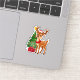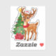 Un bonito ilustracion personalizado de reno con sombrero de Santa y bufanda, con vibrantes y alegres vibraciones vacacionales, perfecto para decoraciones festivas o diseños de temática infantil.