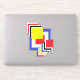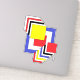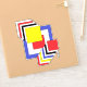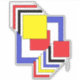 Esta obra de arte geométrica abstracta de Richard H. Fay presenta un conjunto de cuadrados en los colores primarios del rojo, el azul y el amarillo, así como el negro y el blanco.
