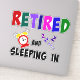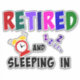 Retirado y durmiendo en, colorido diseño caprichoso con el timbre de la alarma roja...