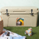 Pegatina Retrato de macao azul y amarillo
