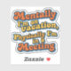 This vintage-style funny quote design says it all: “Mentally I’m on vacation, physically I’m in a meeting.” With bold retro typography in warm orange and yellow hues, outlined in blue for extra pop, this design captures the sarcastic exhaustion of modern life. Perfect for anyone surviving meetings with daydreams of beach getaways! Ideal for office humor merch, burnout culture gifts, or a funny sticker on your laptop to let the world know where your mind really is.