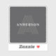 Pegatina Retro Gris oscuro Monogramo moderno Nombre