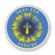 Cruza un girasol ucraniano azul y amarillo con las palabras "Recen por Ucrania".