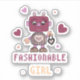 Robot lindo chica tonos burdeos con corazones y texto CHICA FASHIONABLE